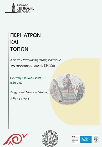 Ο σύλλογος «Ο Ιπποκράτης στη Λάρισα» σε συνεργασία με την Εφορεία Αρχαιοτήτων Λάρισας, το Τμήμα Ιατρικής του Πανεπιστημίου Θεσσαλίας και το Γαλλικό Ινστιτούτο Λάρισας, στο πλαίσιο του επετειακού έτους 2021, για τον εορτασμό των 200 χρόνων από την επανάσταση του 1821 διοργανώνει την εκδήλωση με τίτλο «ΠΕΡΙ ΙΑΤΡΩΝ ΚΑΙ ΤΟΠΩΝ – Από τον Ιπποκράτη στους γιατρούς της προεπαναστατικής Ελλάδας».