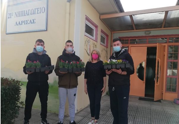 ΠΡΟΣΦΟΡΑ ΑΝΘΟΚΟΜΙΚΩΝ ΕΙΔΩΝ ΣΤΟ 21ο ΝΗΠΙΑΓΩΓΕΙΟ ΛΑΡΙΣΑΣ ΑΠΟ ΤΟΥΣ ΜΑΘΗΤΕΣ ΤΟΥ ΤΟΜΕΑ ΓΕΩΠΟΝΙΑΣ ΤΟΥ 1ου ΕΠΑ.Λ ΛΑΡΙΣΑΣ