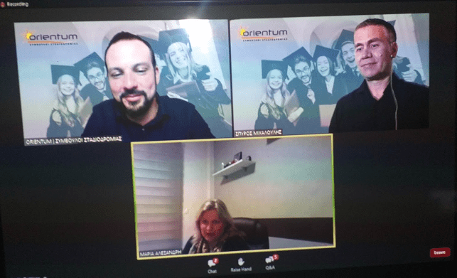 Μέσα σε ευχάριστο κλίμα πραγματοποιήθηκε το διαδικτυακό Σεμινάριο Επαγγελματικού Προσανατολισμού σε μαθητές της Γ’ Γυμνασίου και Λυκείου, Γενικού και ΕΠΑΛ, το Σάββατο 3 Απριλίου 2021 στο φροντιστήριο «Νόησις».