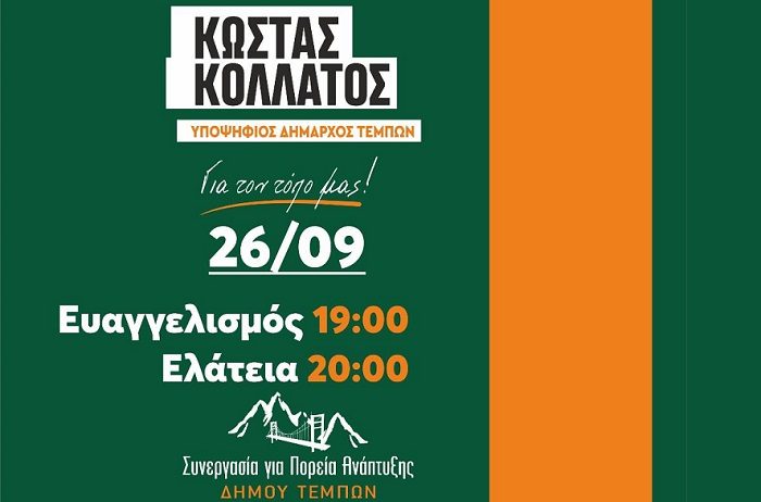 Συνεχίζει τις προεκλογικές του ομιλίες ο υποψήφιος Δήμαρχος Τεμπών κ.Κώστας Κολλάτος.