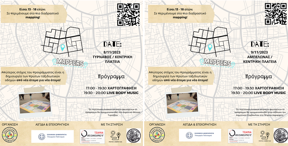 ΣΕ ΤΥΡΝΑΒΟ ΚΑΙ ΑΜΠΕΛΩΝΑ ΣΗΜΕΡΑ ΚΑΙ ΑΥΡΙΟ ΤΟ ΠΟΛΙΤΙΣΤΙΚΟ ΠΡΟΓΡΑΜΜΑ MAPPERS