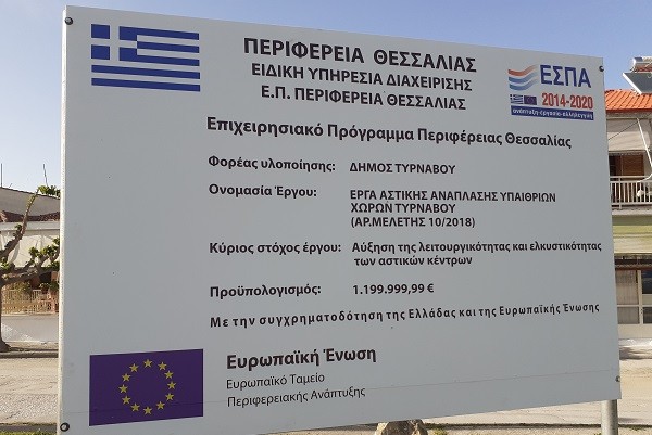 Πολύ συχνά βλέπουμε δημοσιεύματα (με τελευταία αυτά στο paidis.com για  τα έργα της ΔΕΥΑΤ, αλλά και το έργο του πολιτιστικού κέντρου του Αμπελώνα) για έργα της προηγούμενης δημοτικής αρχής που ξεκίνησαν και υλοποιούνται. Θα δούμε επίσης, πολλές ταμπέλες που θα αναφέρονται σε έργα, όπως η συγκεκριμένη που αναφέρεται σε ένα έργο που σχεδιάστηκε, οργανώθηκε και ετοιμάστηκε στο 100% από εμάς και αφορά τις αστικές αναπλάσεις του Τυρνάβου.