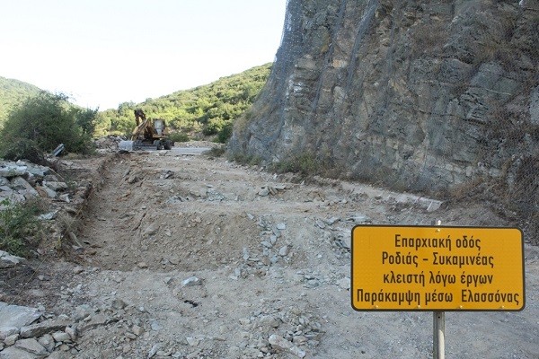 Ξεκίνησαν από την Περιφέρεια Θεσσαλίας οι εργασίες κατασκευής του σκεπάστρου από οπλισμένο σκυρόδεμα στο οδικό τμήμα που συνδέει τους οικισμούς της Ροδιάς και της Συκαμινέας με διακοπή της κυκλοφορίας της οδού και εκσκαφή της θεμελίωσης του έργου. Το σκέπαστρο κατασκευάζεται προκειμένου να ενισχυθεί η ασφάλεια στις μετακινήσεις των ανθρώπων, καθώς η βραχομάζα πάνω από το σκέπαστρο έχει ήδη αγκυρωθεί με τοποθέτηση πλέγματος και συστηματική εφαρμογή αγκυρώσεων πλήρους πάκτωσης.