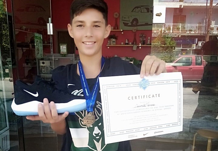 Ο νεαρός αθλητής επιλέχθηκε να πάρει μέρος στις προπονήσεις της ακαδημίας ανάμεσα σε 550 συνομηλίκους του αθλητές και σήμερα γεμάτος χαρά και ικανοποίηση παρέλαβε μετάλλιο, δίπλωμα συμμετοχής και παπούτσια μπάσκετ.
