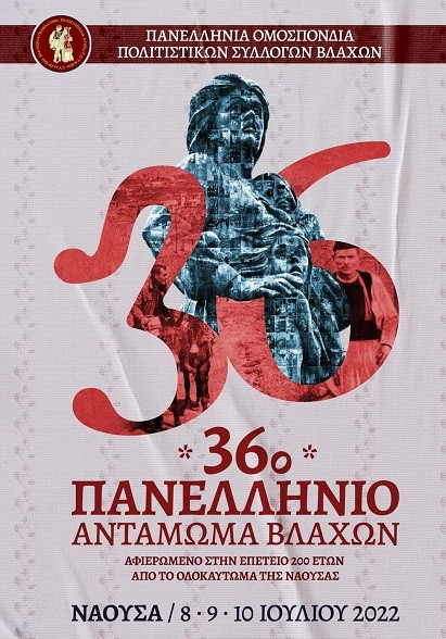 Το 36ο Πανελλήνιο Αντάμωμα Βλάχων θα πραγματοποιηθεί στη Νάουσα το τριήμερο 8,9 και 10 Ιουλίου και είναι αφιερωμένο στη 200η επέτειο από το Ολοκαύτωμα της πόλης. Το πρόγραμμα του ανταμώματος έχει ως εξής:
