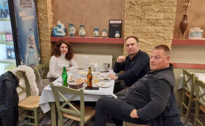 Ευκαιρία για μια μικρή απόδραση από τις απαιτήσεις της καθημερινότητας στο δήμο Τυρνάβου, αλλά και για επαφή με τους δημότες είχαν χθες το μεσημέρι στον Αμπελώνα ο αντιδήμαρχος Τεχνικών Εργων Χριστόφορος Κατσαρός και η γενική γραμματέας του δήμου Τυρνάβου κ. Ελενα Ζαρόγιαννου που βρέθηκαν στο γνωστό ουζερί – ταβέρνα «Η Σαντορίνη»