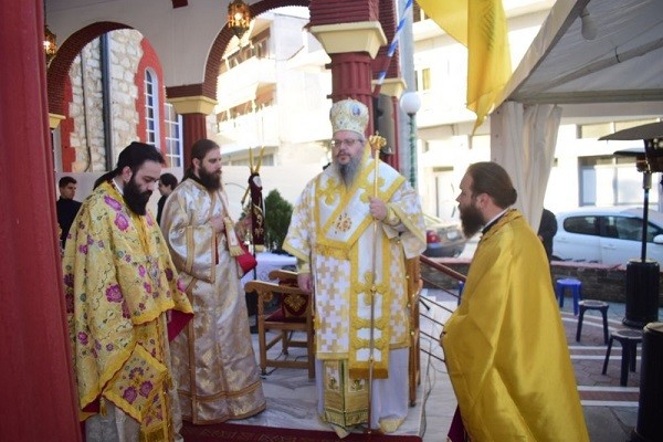 Στα προπύλαια του χτυπημένου από τον σεισμό ιερού ναού του Αγ. Γεωργίου στον Τύρναβο λειτούργησε την Κυριακή ο Σεβασμιότατος Μητροπολίτης Λαρίσης και Τυρνάβου κ. Ιερώνυμος, τηρουμένων των υγειονομικών μέτρων.