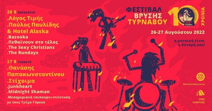 Το διήμερο 26 και 27 Αυγούστου διοργανώνεται φέτος το 10ο Φεστιβάλ μουσικής στη Βρύση Τυρνάβου. με τίτλο “Η Μουσική είναι η δύναμή μας”. Σε ανακοίνωση – κάλεσμα των διοργανωτών αναφέρονται τα παρακάτω: