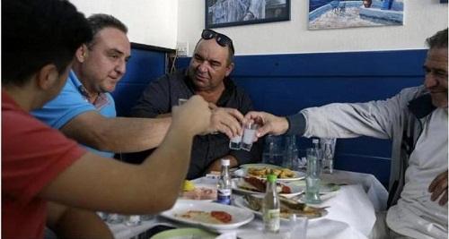 Συζητούν για λίγο για τα προβλήματα που αντιμετωπίζουν στο χώρο της δουλειάς τους και για την οικονομική κρίση στη χώρα. Εδώ είναι ένα μέρος όπου οι φίλοι μπορούν να περιπλανηθούν ανάμεσα σε ένα αστείο, σε ένα μεζέ, σε ένα πιάτο τηγανητές πατάτες με λίγο χταποδάκι και αργά το απόγευμα ένα ποτήρι τσίπουρο, το ισχυρό τοπικό ποτό.