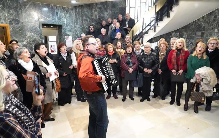 Κάλαντα και χριστουγεννιάτικα τραγούδια πλημμύρισαν το Δημαρχείο της Λάρισας. Μέλη της χορωδίας της Αντιδημαρχίας Κοινωνικής Πολιτικής Δήμου Λαρισαίων «Η Ευεστώ», βρέθηκαν στο δημαρχείο για ευχές και κάλαντα.