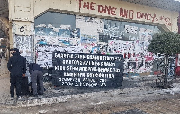 Συγκέντρωση αλληλεγγύης στον απεργό πείνας Δ. Κουφοντίνα πραγματοποιήθηκε το απόγευμα της Παρασκευής στον πεζόδρομο της Βενιζέλου, στο ύψος του Α’ Αρχαίου Θεάτρου Λάρισας.