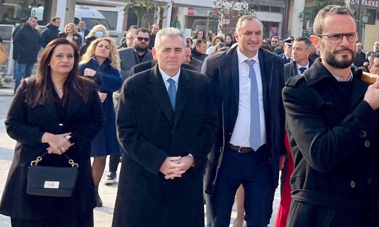 Μετά την λιτανεία ο κυβερνητικός βουλευτής ευχήθηκε τα Χρόνια Πολλά στη δημοτική αρχή, τον δήμαρχο Τυρνάβου κ. Γιάννη Κόκουρα και τον Γραμματέα του Περιφερειακού Συμβουλίου, εκπρόσωπο της επαρχίας στην Περιφέρεια Θεσσαλίας, κ. Ανδρέα Μπρέζα.