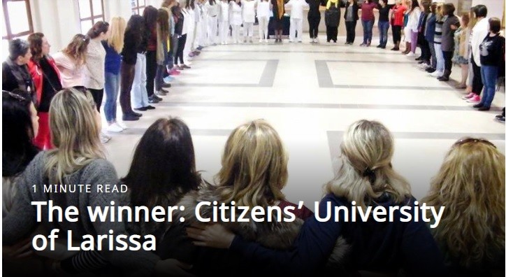Η βράβευση της Λάρισας μέσω του Πανεπιστημίου των Πολιτών από την ΕΕΕΑ, δικαιώνει τις προσπάθειες του Δήμου και πολλών τοπικών φορέων οι οποίοι σε αγαστή συνεργασία προωθούν ζητήματα δια βίου μάθησης και εκπαίδευσης ενηλίκων με στόχο την κοινωνική συνοχή. Με οργάνωση, σχέδιο και ευθύνη απέναντι στους πολίτες υλοποιούνται προγράμματα όπως οι Σχολές Γονέων, προγράμματα για τον ηλεκτρονικό αλφαβητισμό της τρίτης ηλικίας, προγράμματα για τους εκπαιδευτικούς, τους ενεργούς πολίτες, δράσεις με έμφαση στις ευάλωτες ομάδες.