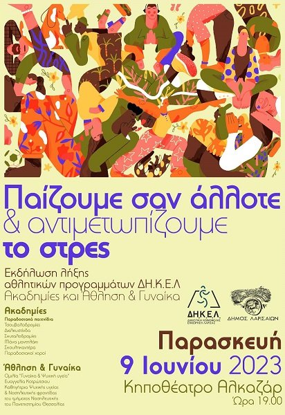 Την Παρασκευή 9 Ιουνίου 2023 και ώρα 19.00 στο Κηποθέατρο –Αλκαζάρ, θα πραγματοποιηθεί εκδήλωση λήξης των αθλητικών προγραμμάτων της ΔΗ.Κ.Ε.Λ. του Δήμου Λαρισαίων.