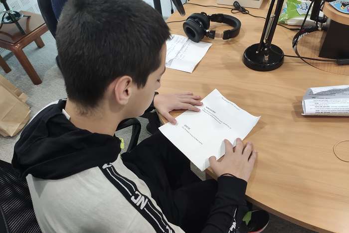 Το ΕΝ.Ε.Ε.ΓΥ. – Λ. Λάρισας στο πλαίσιο της Παγκόσμιας Ημέρας των ΑμεΑ, την Πέμπτη 8 Δεκεμβρίου μαθητές της Α΄ και Γ΄ Γυμνασίου του σχολείου μας μαζί με μαθητές του 1ου Πειραματικού Γυμνασίου είχαν την ευκαιρία να ηχογραφήσουν την πρώτη τους ραδιοφωνική εκπομπή στο ραδιοφωνικό σταθμό της Ιεράς Μητροπόλεως Λαρίσης και Τυρνάβου!