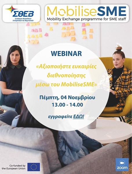 Ο Σύνδεσμος Θεσσαλικών Επιχειρήσεων και Βιομηχανιών διοργανώνει διαδικτυακό σεμινάριο διάρκειας 4 ωρών την Δευτέρα 8 Νοεμβρίου, ώρες 17:00 – 21:00, με θέμα: «Το νέο εργασιακό στην πράξη – διαχείριση και εργαλεία ευέλικτης εργασίας – διαχείριση κρίσης» μέσω της πλατφόρμας του zoom.