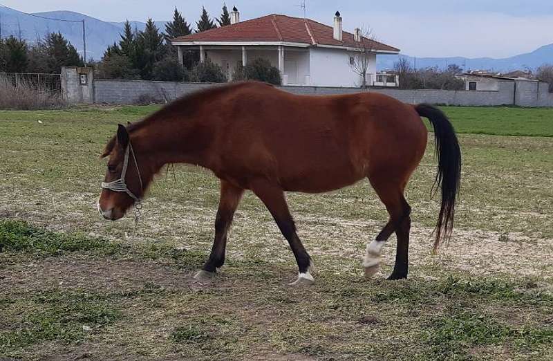 Η φοράδα της φωτογραφίας κυκλοφορεί από νωρίς το απόγευμα σήμερα ελεύθερη στην περιοχή Τσάι μαχαλάς στον Αμπελώνα, αφού έκοψε το σχοινί με το οποίο ήταν δεμένη.
