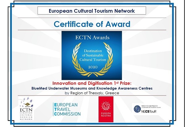 Νέα ευρωπαϊκή διάκριση για την Περιφέρεια Θεσσαλίας στην ανάδειξη  καινοτόμων, εναλλακτικών  τουριστικών προϊόντων με προστιθέμενη αξία για την οικονομία, τον πολιτισμό  και τις τοπικές κοινωνίες. Το έργο – σημαία του Υποθαλάσσιου Μουσείου της Περιστέρας στην Αλόννησο της Περιφέρειας Θεσσαλίας απέσπασε το 1ο Βραβείο στην κατηγορία: «Καινοτομία και ψηφιοποίηση στον αειφόρο πολιτιστικό τουρισμό, προς έξυπνους προορισμούς» του Ευρωπαϊκού  Δικτύου Πολιτιστικού Τουρισμού  ECTN.
