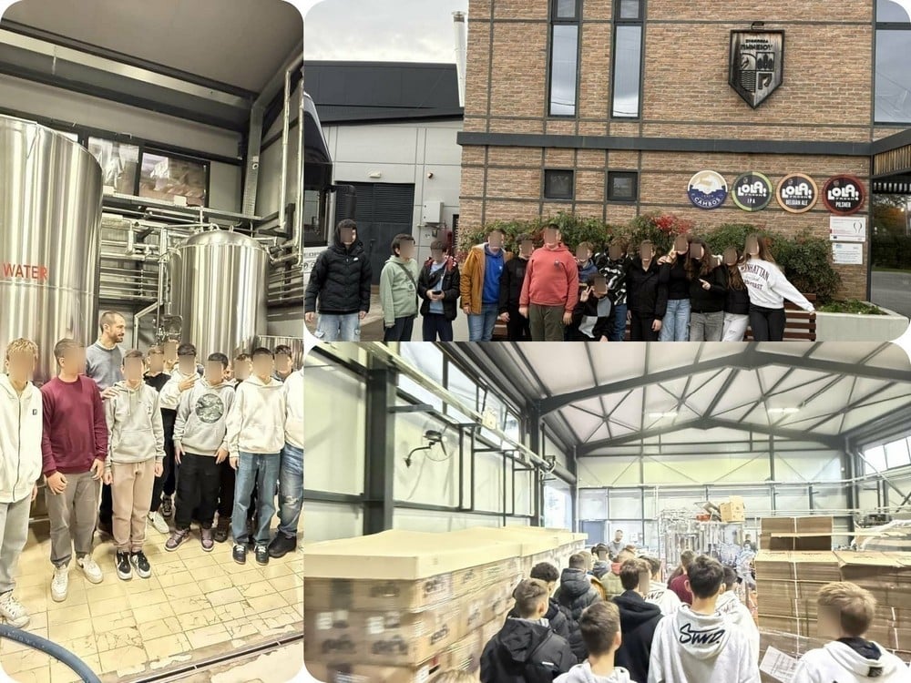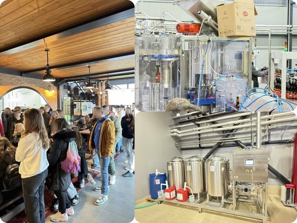 Στη συνέχεια, οι μαθητές και οι μαθήτριες, συνοδευόμενοι/-ες από τους καθηγητές /-τριές τους, επισκέφτηκαν τη Ζυθοποιία Πηνειού για την ενημέρωση παραγωγής της μπύρας ΛΟΛΑ (LΟve Lαrissa)-LOLA fresh beer, όπου παρατήρησαν από κοντά πώς παρασκευάζονται διάφορα είδη μπύρας («ζύθου»). Ο υπεύθυνoς της ξενάγησης τους/τις εξήγησε τα στάδια της διαδικασίας παραγωγής και απάντησε στις απορίες τους, δείχνοντάς τους τον τρόπο με τον οποίο η γνώση, η τεχνική και η παραγωγή συνδέονται μεταξύ τους.