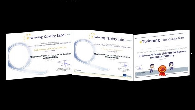 3η  Εθνική Ετικέτα Ποιότητας απονεμήθηκε στο 1ο Δημοτικό Σχολείο Αμπελώνα για το συνεργατικό έργο ETwinneres Town – citizens in action for sustainability( πολίτες σε δράση για την βιωσιμότητα της πόλης). Στο έργο οι μαθητές ανέλαβαν δράση για τη βιωσιμότητα της πόλης που σέβεται τις προτεραιότητες της αειφόρου ανάπτυξης και επιτρέπει στους κατοίκους να ζουν σε καλές συνθήκες και σε αρμονία με τη φύση.