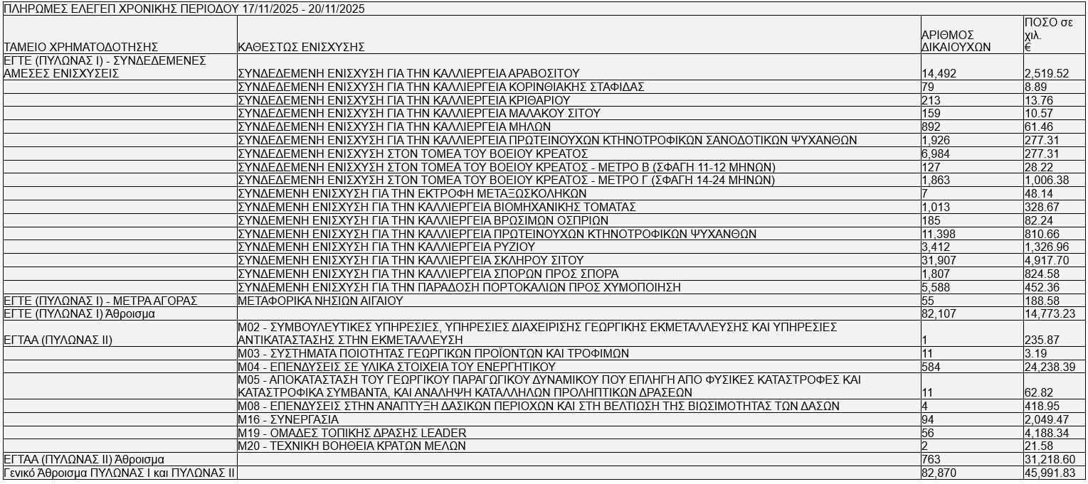 Στην πληρωμή και νέων συμπληρωματικών συνδεδεμένων ενισχύσεων (αιτήσεις του 2024) σε 82.870 αγρότες προχώρησε ο ΟΠΕΚΕΠΕ, καταβάλλοντας συνολικά 46 εκατομμύρια ευρώ στους τραπεζικούς λογαριασμούς των δικαιούχων.