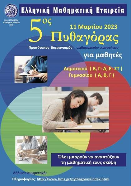 5ος ΠΑΝΕΛΛΗΝΙΟΣ ΜΑΘΗΜΑΤΙΚΟΣ ΔΙΑΓΩΝΙΣΜΟΣ ΠΥΘΑΓΟΡΑΣ ΤΗΣ ΕΛΛΗΝΙΚΗΣ ΜΑΘΗΜΑΤΙΚΗΣ ΕΤΑΙΡΕΙΑΣ