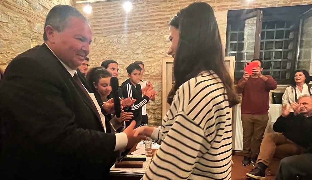 Μετά το τέλος της εκδήλωσης η ομάδα των σχολείων χάρισε στον κ. Συγγελάκη ένα συμβολικό πενάκι, θέλοντας να εκφράσει τις ευχαριστίες και την ευγνωμοσύνη για τη συνεργασία και τη φιλοξενία στην Κρήτη. Η διευθύντρια του 5ου Γυμνασίου Ζωή Δεληζώνα μιλώντας, αναφέρθηκε στη συνεργασία της διασχολικής ομάδας στην ημερίδα για τα Μαρτυρικά χωριά της Θεσσαλίας που πραγματοποιήθηκε στις 3 Μαΐου 2025 στο Χατζηγιάννειο Πνευματικό Κέντρο της Λάρισας και τη συμβολή του κ. Συγγελάκη ώστε να ταξιδέψει το διασχολικό πρόγραμμα στην Κρήτη και να ακουστεί η φωνή και ο αγώνας της Εκπαίδευσης για τη μετάδοση της ιστορικής μνήμης…