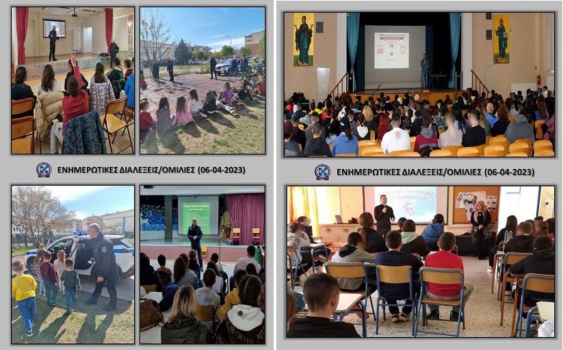 Κατά τον προηγούμενο μήνα, το Μάρτιο του 2023, αστυνομικοί υφιστάμενων υπηρεσιών της Γενικής Περιφερειακής Αστυνομικής Διεύθυνσης Θεσσαλίας και συγκεκριμένα υπηρεσιών τάξης, ασφάλειας και τροχαίας των Διευθύνσεων Αστυνομίας Λάρισας, Μαγνησίας, Τρικάλων και Καρδίτσας, πραγματοποίησαν συνολικά -72- ενημερωτικές διαλέξεις/ομιλίες με ποικίλη θεματολογία σε σχολικές μονάδες, δομές και στρατιωτική μονάδα της Θεσσαλίας.