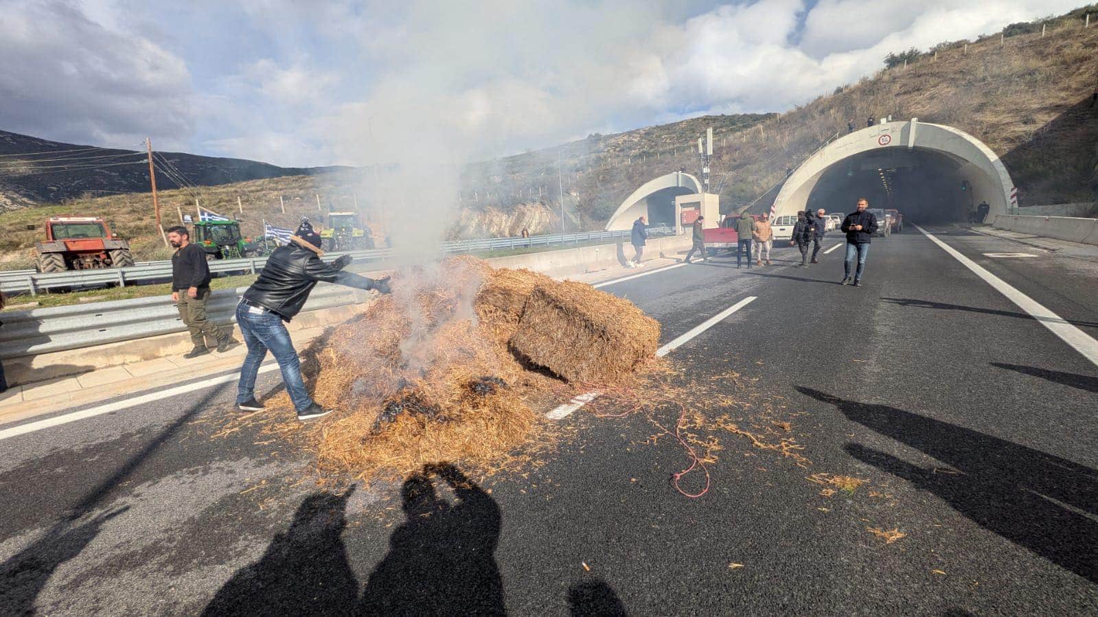 Στο χώρο των σηράγγων οι αγρότες πέταξαν μπάλες άχυρο τις οποίες άναψαν, ενώ προχώρησαν και σε αποκεισμό της π.ε.ο. Λάρισας Θεσσαλονίκης στο ύψος του Πυργετού.