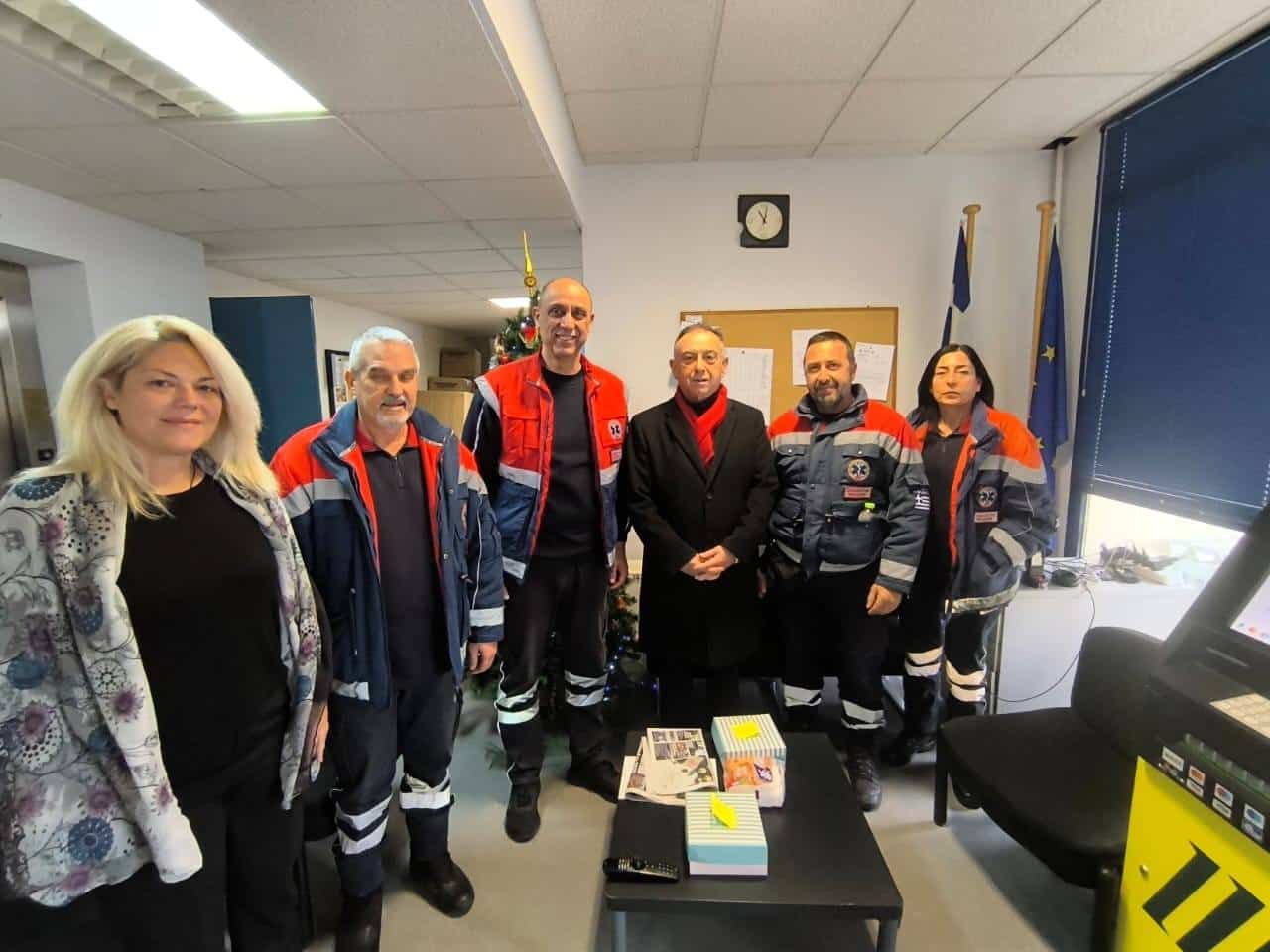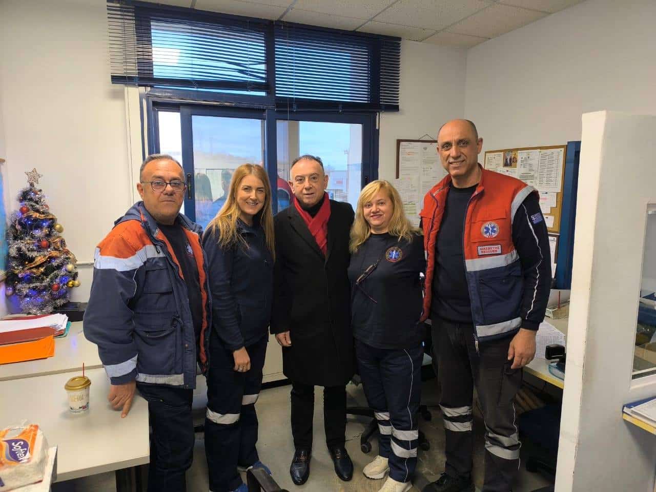 Ακολούθως, ο Υφυπουργός επισκέφθηκε το ΕΚΑΒ Θεσσαλίας, όπου είχε συνάντηση με τον Πρόεδρο των Εργαζομένων, Γιάννη Γούλα, διασώστες και εργαζόμενους, οι οποίοι βρίσκονται σε διαρκή επιφυλακή, ιδιαίτερα τις ημέρες αυξημένων αναγκών λόγω των εορτών.