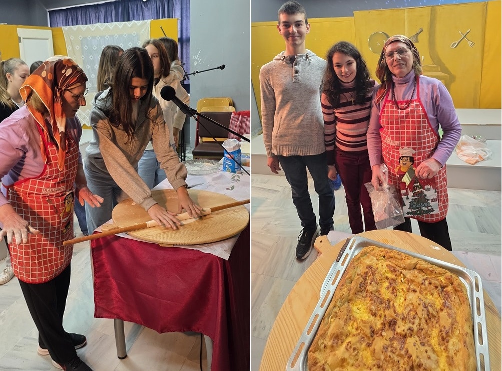 Ιδιαίτερη στιγμή της γιορτής αποτέλεσε το άνοιγμα φύλλων για πίτα, προσφορά της γιαγιάς μιας μαθήτριας του σχολείου μας. Με τη συμμετοχή των μαθητών, η διαδικασία εξελίχθηκε σε μια όμορφη βιωματική εμπειρία, αναδεικνύοντας τη σημασία της παράδοσης και της συνεργασίας των γενεών.