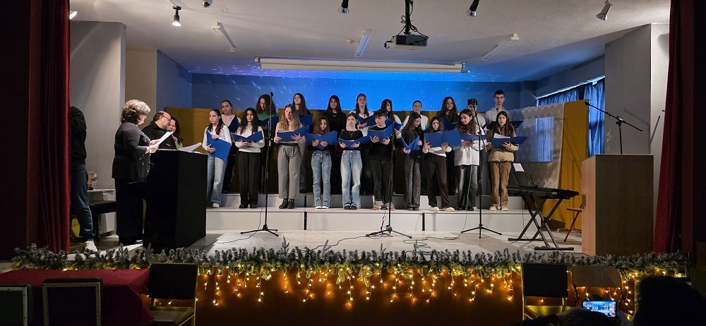 Η εκδήλωση άνοιξε με τη χορωδία του σχολείου, η οποία παρουσίασε Χριστουγεννιάτικα τραγούδια, δημιουργώντας μια ατμόσφαιρα χαράς και εορταστικής διάθεσης. Οι μαθητές απέδωσαν με ευαισθησία και ενθουσιασμό τις μελωδίες, αποσπώντας το θερμό χειροκρότημα όλων.