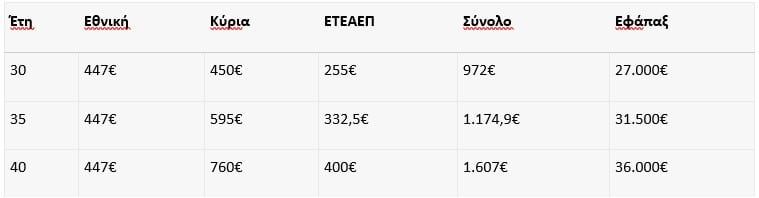 ΕΦΑΠΑΞ : 40έτη Χ 900 € = 36.000 €