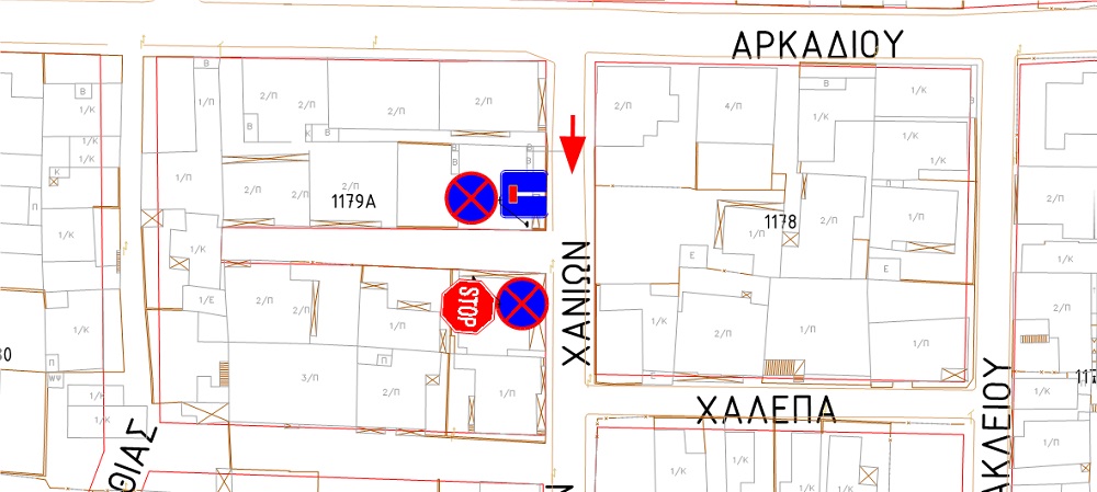 • Απαγόρευση στάσης και στάθμευσης στην πάροδο της οδού Χανίων (Ο.Τ.1179Α).