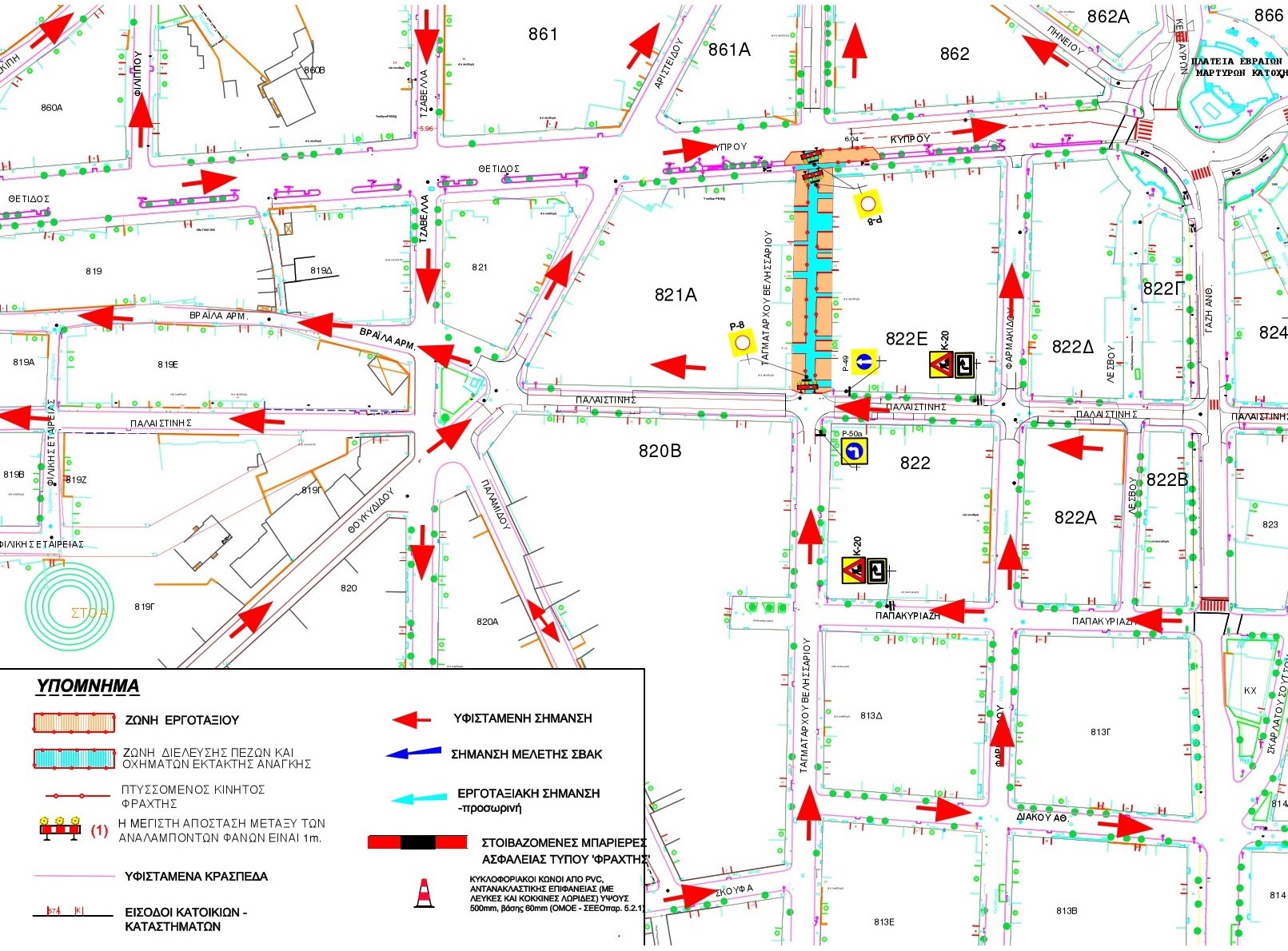 Για τους λόγους αυτούς θα εφαρμοστούν προσωρινές κυκλοφοριακές ρυθμίσεις, με ολικό αποκλεισμό της κυκλοφορίας και της στάθμευσης των οχημάτων στην οδό Ταγμ.Βελησσαρίου (από την οδό Παλαιστίνης έως την οδό Κύπρου), από την Τετάρτη, 15 Απριλίου ως και την Πέμπτη, 14 Μαΐου 2026, καθ’ όλο το 24ωρο, σύμφωνα με το ΦΕΚ 2474/Β/26-4-2024 που αφορά τις προσωρινές κυκλοφοριακές ρυθμίσεις (εργοταξιακού χαρακτήρα) για το παραπάνω έργο.