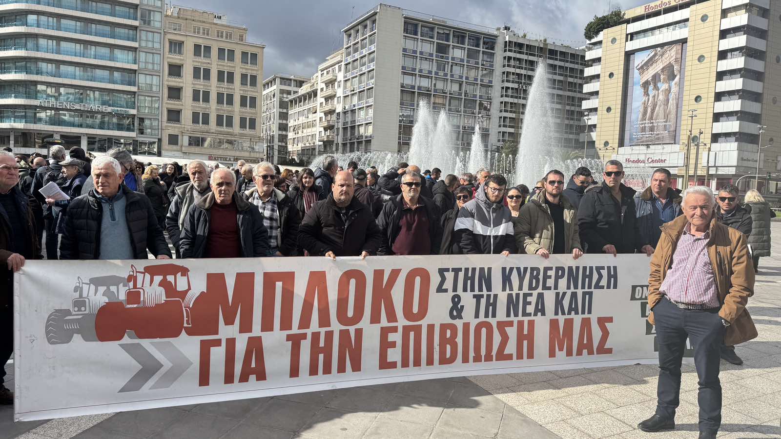 Τα λεωφορεία σταμάτησαν στον Ομόνοια και από εκεί συντονισμένα οι αγρότες θα κατευθυνθούν στο Σύνταγμα.