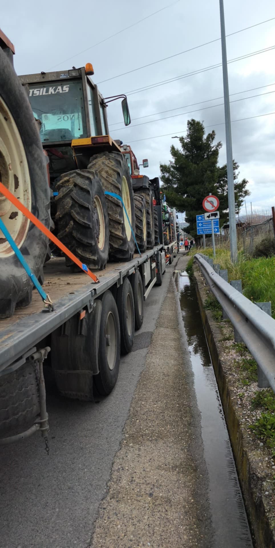 Με επικεφαλής τον δήμαρχο Στέλιο Τσικριτσή οι αγρότες του Τυρνάβου κινήθηκαν προς την πρωτεύουσα με 2 λεωφορεία ενώ δύο αγρότες μετέφεραν τα τρακτέρ τους με φορτηγά.