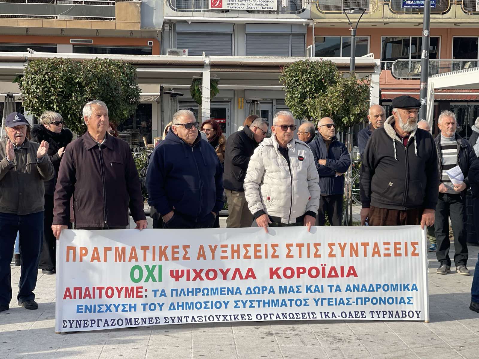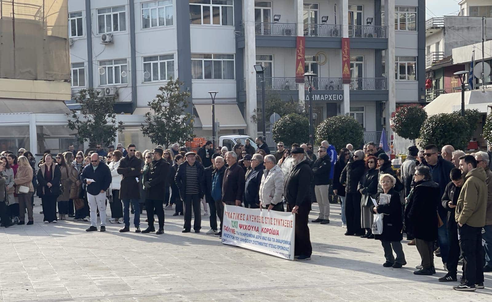 Με κύριο χαρακτηριστικό τη μαζική συμμετοχή εργαζομένων και συνταξιούχων πραγματοποιήθηκε σήμερα η απεργιακή συγκέντρωση στον Τύρναβο που διοργάνωσε ο δήμος που συμμετείχε στην απεργία που κήρυξε η ΚΕΔΕ σε συνεργασία με τα σωματεία και τους συλλόγους της περιοχής.