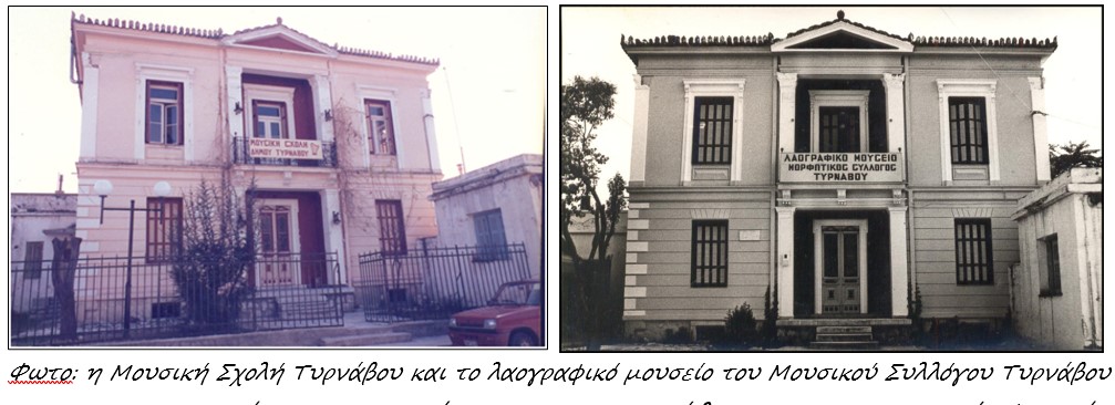 Στη συνέχεια το κτίριο χρησιμοποιήθηκε ως Αγροτικό Ιατρείο, Νηπιαγωγείο, ενώ μεταγενέστερα στέγασε την Φιλαρμονική Τυρνάβου, έδρα του λαογραφικού μουσείου του Μορφωτικού Συλλόγου Τυρνάβου και στο τέλος την Μουσική Σχολή Τυρνάβου με απόφαση του Υπουργείου Πολιτισμού, απόφαση που ισχύει μέχρι και σήμερα!!!