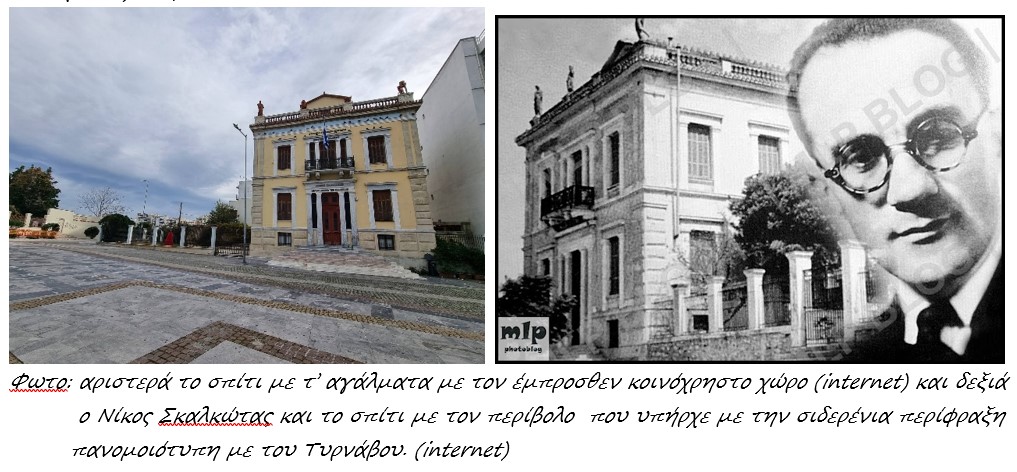 Η ιστορία του νεοκλασικού σπιτιού με τα αγάλματα συνδέεται με τον Νίκο Σκαλκώτα, το πιο διάσημο παιδί της Χαλκίδας. Ο διάσημος συνθέτης της σύγχρονης κλασικής μουσικής γεννήθηκε σε ένα από τα δωμάτια του ορόφου στις 8 Μαρτίου 1904, που είχε νοικιάσει η οικογένειά του.