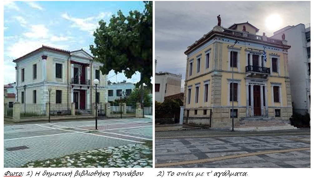 Ο Δήμος Τυρνάβου διαθέτει στην Πλατεία Νικηφόρου Μανδηλαρά ένα όμορφο νεοκλασικό κτίριο που θα μπορούσε να γίνει περισσότερο εντυπωσιακό, χαρακτηρισμένο ως διατηρητέο από το ΥΠΠΟ το 1992, που σήμερα επιχειρεί να στεγάσει τη Δημοτική Βιβλιοθήκη Τυρνάβου, με τα σπάνια παλαίτυπα και χειρόγραφα που διαθέτει.