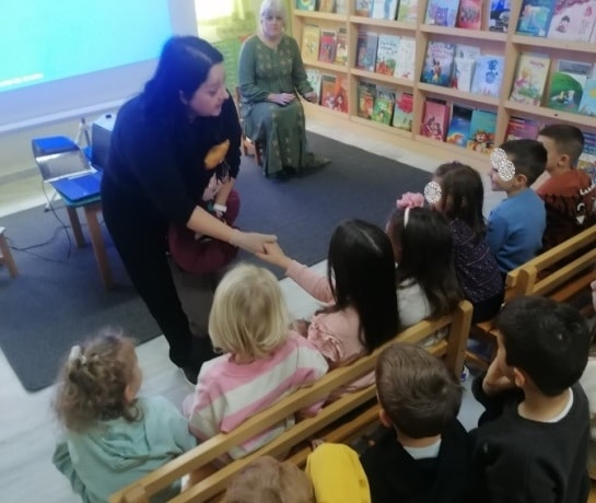 Τα παιδιά συμμετείχαν με ενθουσιασμό, γέλασαν, ρώτησαν, άγγιξαν, ένιωσαν , κατασκεύασαν καπέλο– και έγιναν για λίγο μέρος της ιστορίας.