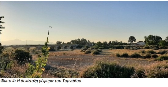 Ο περιηγητής Ιωάννης Λεονάρδος σε πέρασμά του από τον Τύρναβο το 1836 αναφέρει ότι η είσοδος στην πόλη γινόταν από την επιβλητική πέτρινη γέφυρα με τις δεκαέξι κομψές καμάρες, κτίσμα των ύστερων βυζαντινών χρόνων!!!