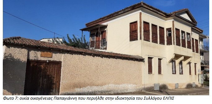 Η παλιά οικία, κτισμένη από μασίφ τούβλο, Τυρναβίτικης προέλευσης των κεραμαριών, στέκει επιβλητική. Κι εδώ κυριαρχεί η συνολική εικόνα με την μεγάλη αυλή εμπρός υπενδεδυμένη με το σύνηθες καλντερίμι, γεμάτη τριανταφυλλιές, την πλατύφυλλη μουριά, δένδρο που κυριαρχούσε παλιότερα στις αυλές των σπιτιών. Κι εδώ το πηγάδι που τροφοδοτούσε με δροσερό νερό τους νοικοκυραίους του.