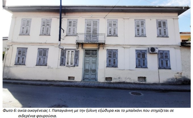 Η παλιά οικία, κτισμένη από μασίφ τούβλο, Τυρναβίτικης προέλευσης των κεραμαριών, στέκει επιβλητική. Κι εδώ κυριαρχεί η συνολική εικόνα με την μεγάλη αυλή εμπρός υπενδεδυμένη με το σύνηθες καλντερίμι, γεμάτη τριανταφυλλιές, την πλατύφυλλη μουριά, δένδρο που κυριαρχούσε παλιότερα στις αυλές των σπιτιών. Κι εδώ το πηγάδι που τροφοδοτούσε με δροσερό νερό τους νοικοκυραίους του.