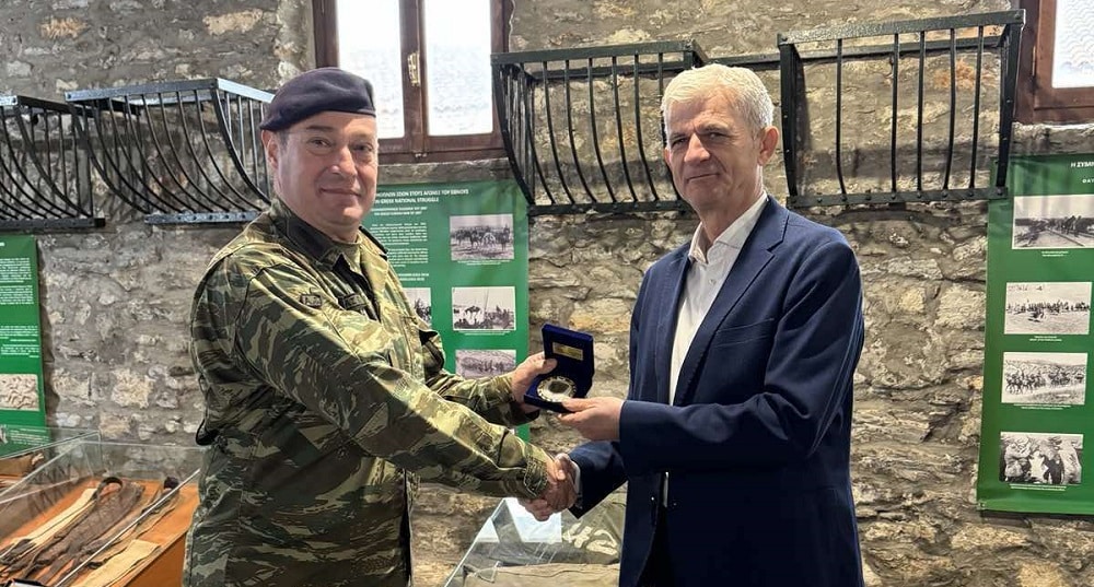 Επιπρόσθετα κατά την διάρκεια της ξενάγησης μας τίμησε με την παρουσία του ο Δ/κτης της VI ΤΑΞΥΠ Ταξίαρχος κ. Ζησέκας Γεώργιος ,ο όποιος απέδωσε τιμητική πλακέτα με το έμβλημα της Ταξιαρχίας στον Διευθυντή Β’ Βαθμιας εκπαίδευσης κ. Νικόλαο Ζέρβα για την συνεργασία στρατού και εκπαίδευσης.