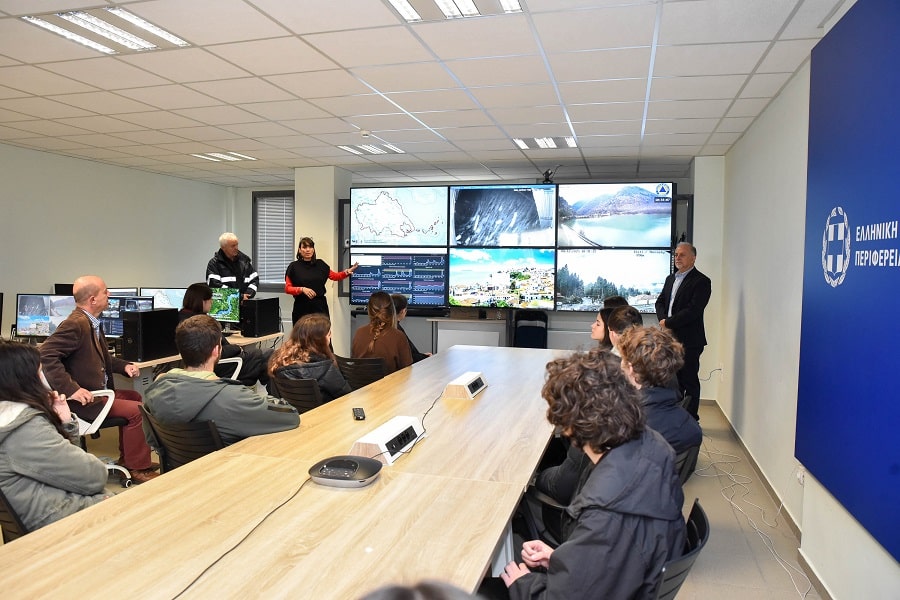 Το πρόγραμμα χαιρέτησε ο Περιφερειάρχης Θεσσαλίας κ . Δημ. Κουρέτας, ο οποίος καλωσόρισε τους μαθητές που επισκέφθηκαν το Κέντρο, τους ευχαρίστησε για τη συμμετοχή τους και τους εξήγησε αρχικά ότι το νέο Κέντρο Πολιτικής Προστασίας έχει φτιαχτεί με στόχο την προστασία των πολιτών, όπως δηλώνει και ο ξένος όρος «civil protection». Τόνισε ότι το Κέντρο διαθέτει τεχνολογία που επιτρέπει την προληπτική διαχείριση φυσικών καταστροφών, από την παρακολούθηση της βροχόπτωσης και της στάθμης των ποταμών μέχρι τη μεταφορά κρίσιμων πληροφοριών στις υπηρεσίες. Υπογράμμισε, μάλιστα, ότι η πολιτική προστασία συμβάλλει στη διαχείριση γεγονότων όπως πυρκαγιές ή σεισμοί , ενώ παρέχει υποστήριξη και διευκόλυνση πρόσβασης σε ρεύμα ή ίντερνετ σε πληγείσες περιοχές.