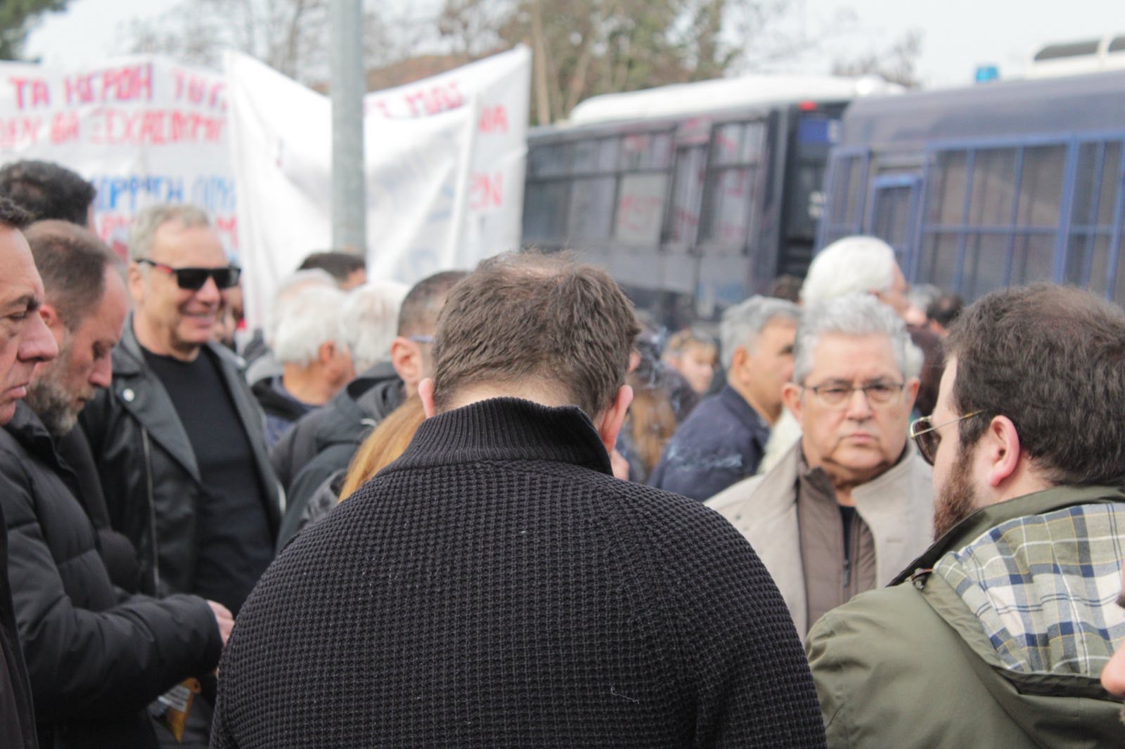 Στη συγκέντρωση παρευρίσκεται ο ΓΓ της ΚΕ του ΚΚΕ, Δημήτρης Κουτσούμπας και ο δήμαρχος Τυρνάβου Στέλιος Τσικριτσής.