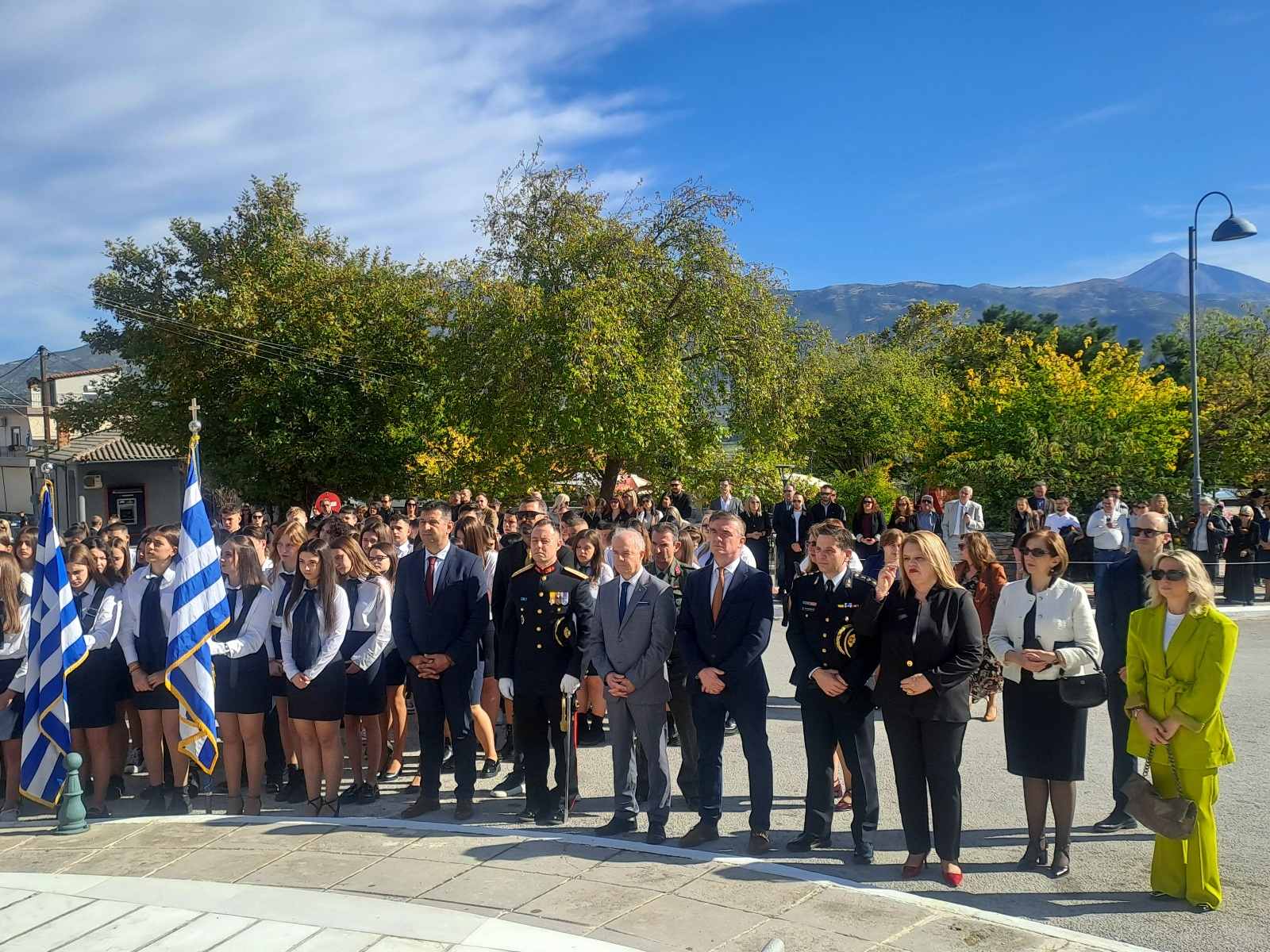 Ακολούθησε επιμνημόσυνη δέηση στο Ηρώο των Πεσόντων και κατάθεση στεφάνων στη μνήμη όσων αγωνίστηκαν και θυσιάστηκαν για την ελευθερία της πατρίδας. Τον πανηγυρικό της ημέρας εκφώνησε η εκπαιδευτικός κα Ελένη Θεοχάρη η οποία, με συγκινητικό λόγο, εξήρε το μεγαλείο του αγώνα των Ελλήνων του 1940 και τα διαχρονικά μηνύματα της εθνικής ενότητας και της ειρήνης.