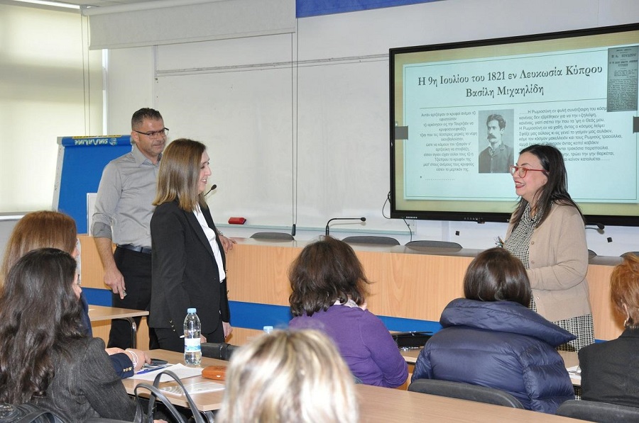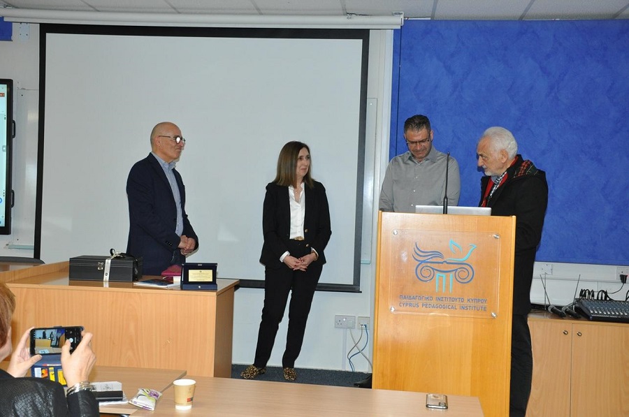 Τη Δευτέρα 9/2, πραγματοποιήθηκε επιμορφωτικό σεμινάριο στις εγκαταστάσεις του Παιδαγωγικού Ινστιτούτου Κύπρου. Τους/τις Ελλαδίτες/ισσες εκπαιδευτικούς υποδέχθηκε με θερμούς λόγους η Διευθύντρια του Παιδαγωγικού Ινστιτούτου, κ. Χατζηκακού Έλενα, αναφερόμενη στους ισχυρούς δεσμούς, οι οποίοι ενώνουν τις δύο χώρες, όπως, επίσης, και η Πρώτη Λειτουργός, κ. Χατζηθεοδούλου-Λοϊζίδου Παυλίνα.